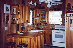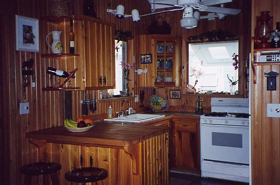 The three-bedroom cottage has vaulted ceilings, hardwood and tile floors, French doors, tile countertops, and an open floor plan, and is nicely decorated. Ceiling fans are located in every room and commercial electric power is backed up with solar power and a generator.